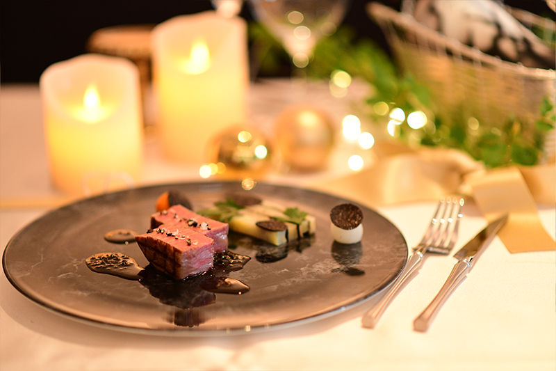 シェフの感性で随所にトリュフをあしらい、「香り」「食感」「温度」で織りなす“冬の物語”をお楽しみいただけます。厳選された食材とシェフの技が奏でる一皿一皿が、大切な人と過ごす聖夜のテーブルを、より特別で華やかなひとときへと導きます。お一人様30,250円(税サ込)